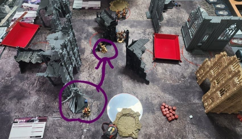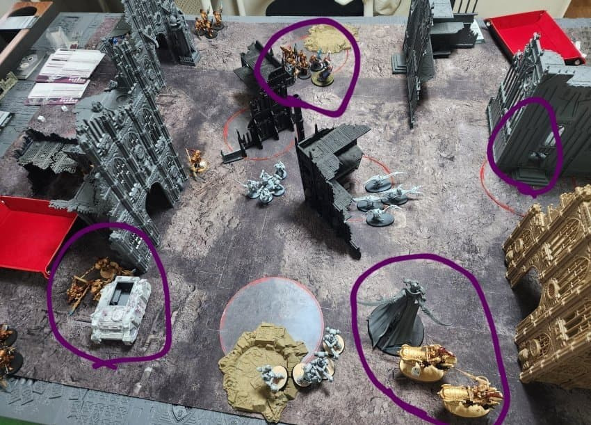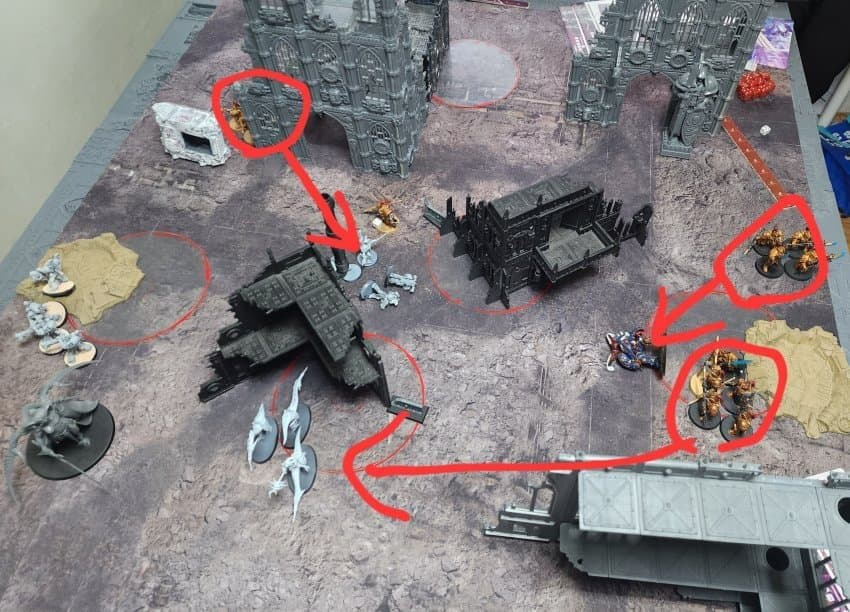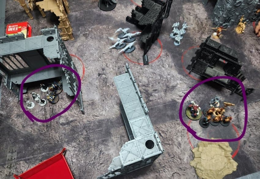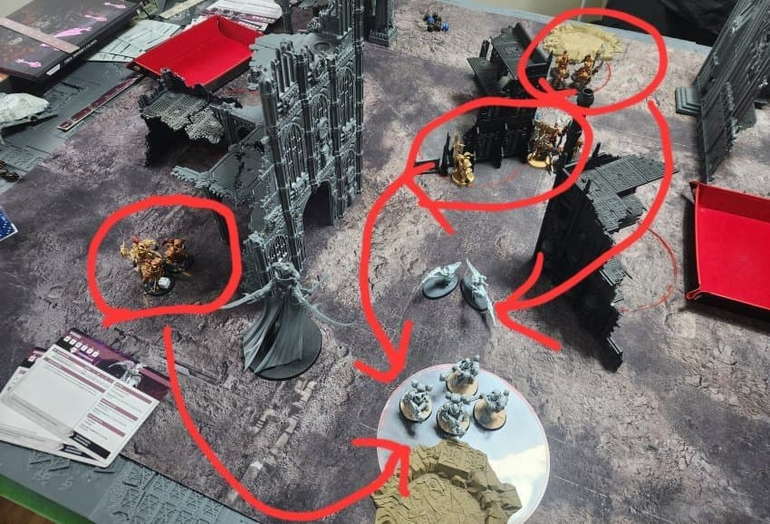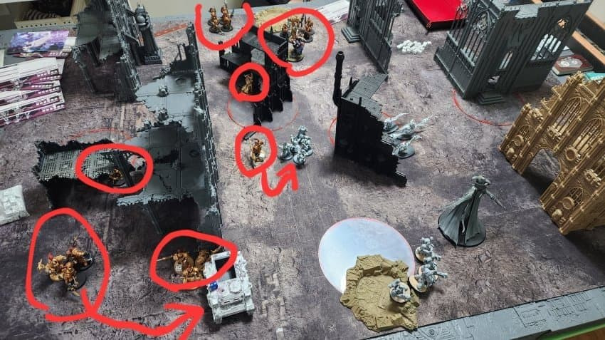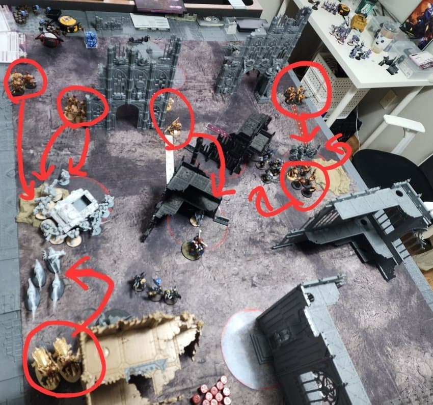 유닛을 소극적으로 이동하되, 6인치 이내 아군 유닛이 없도록 조정하여 디태치 룰을 등에 업고 사격전에 임합니다.
